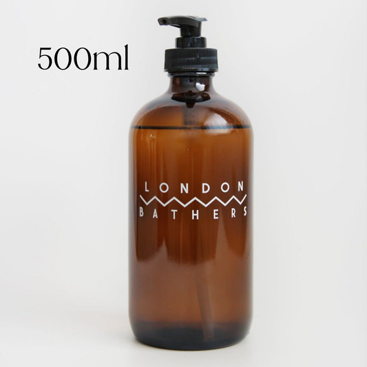 Available in our recyclable and refillable glass bottles, simply pour under running water, foam up and hop in.