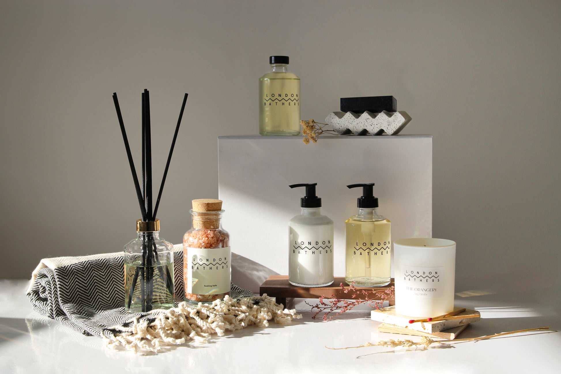 Designed for the most indulgent experience, this VIP suite gift set includes our complete range of luxurious essentials: Handwash, Hand Lotion, Diffuser, Foam Bath, Bath Salts, Charcoal Bar Soap, and a Handmade Zig-Zag Concrete Soap Dish. To complete the experience, we’ve added a luxurious candle and a beautifully handmade peshtemal towel. The perfect gift for those who appreciate the finer things in life.